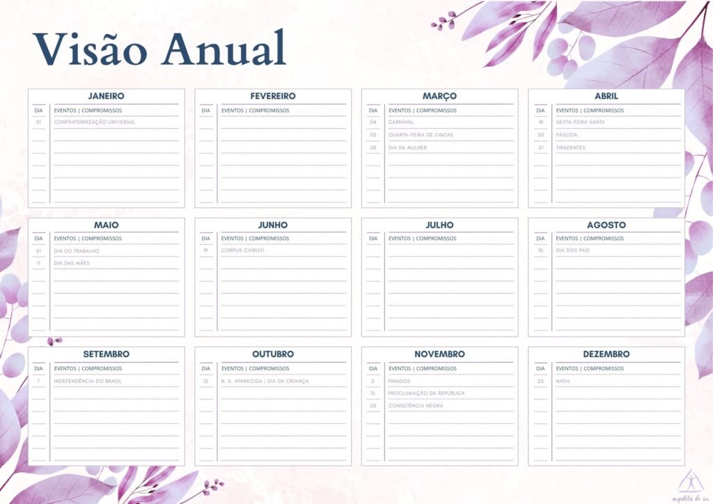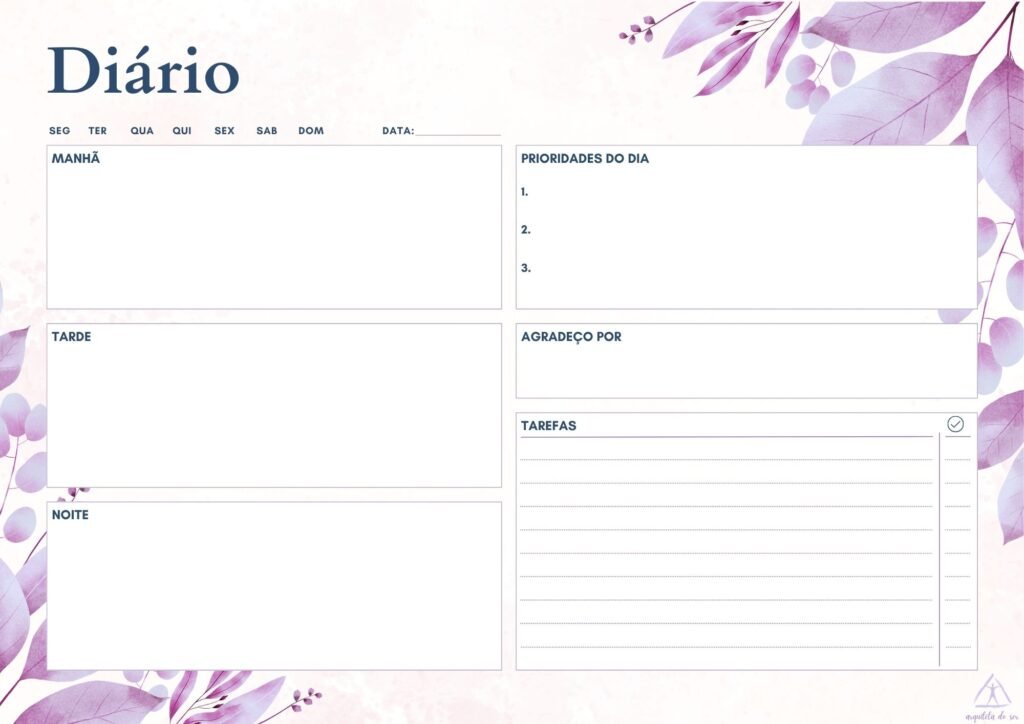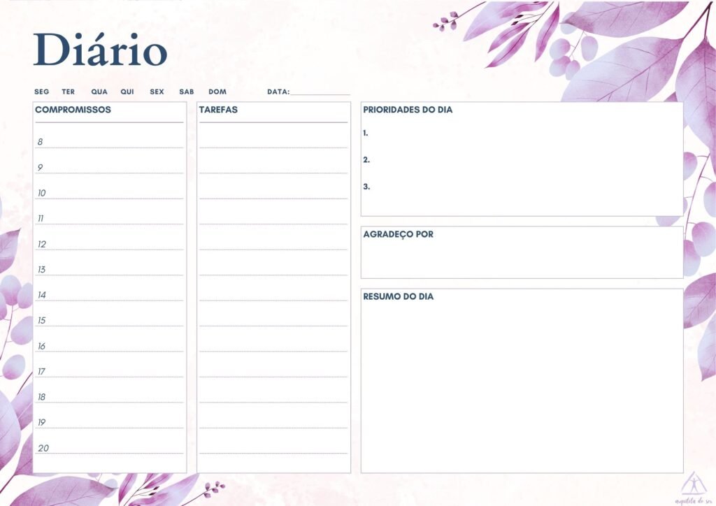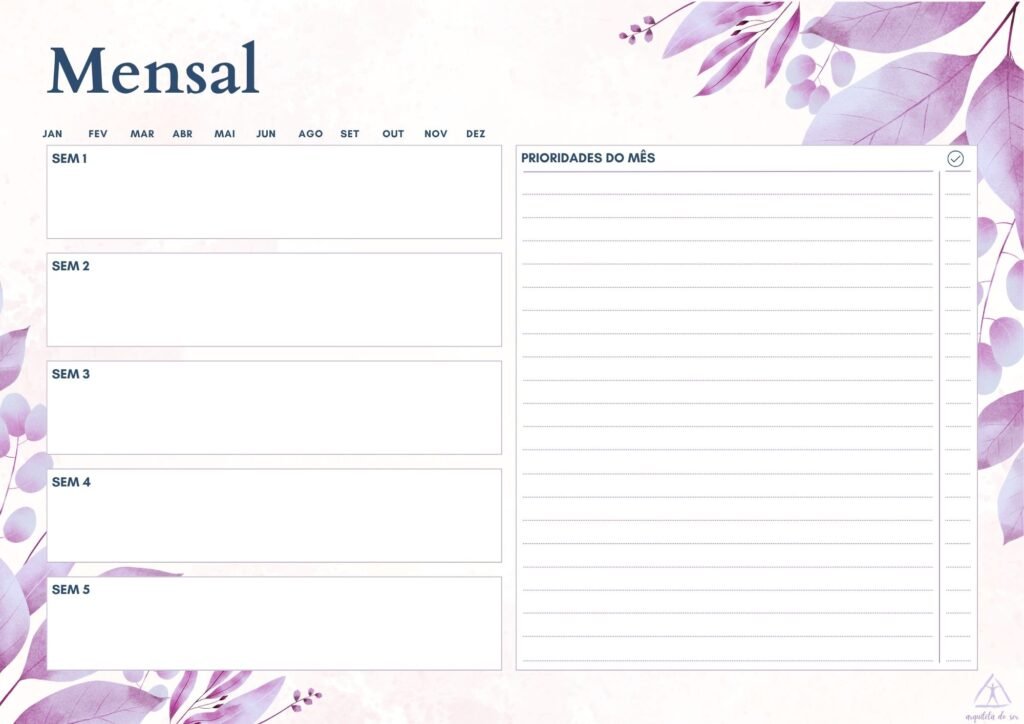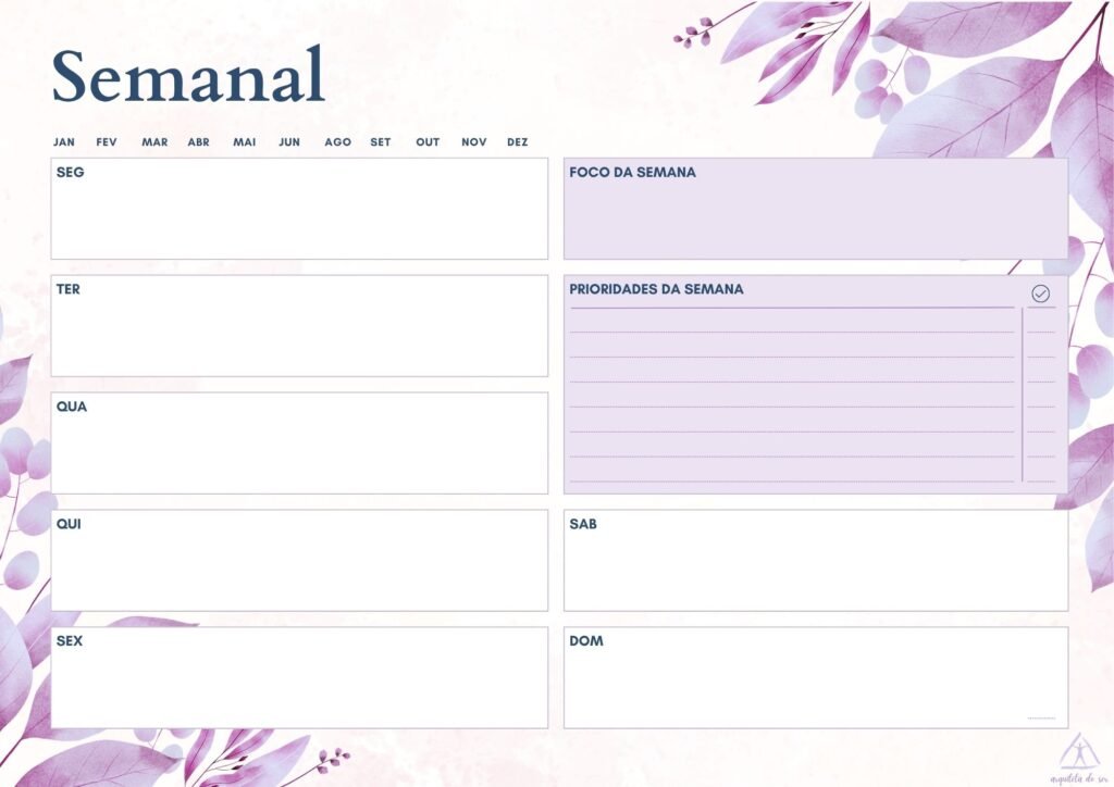 Ficou incrível o planner e o ideal é imprimir a folha que dê um norte semanal, mensal e anual para não nos perdermos em nossos propósitos e tarefas cotidianas de cuidarmos de nós mesmas. Muito obrigada por essa partilha